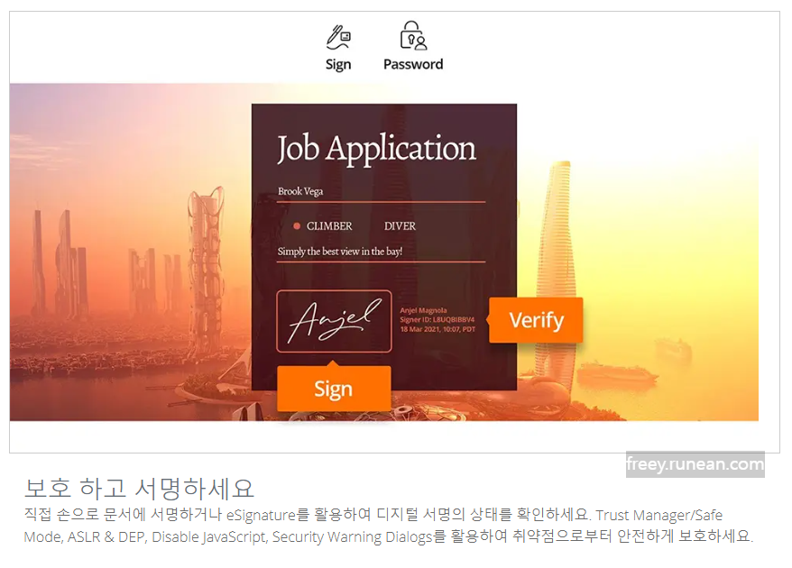 [질문] Foxit PDF Reader에서 문서에 서명하는 방법은 무엇인가요?