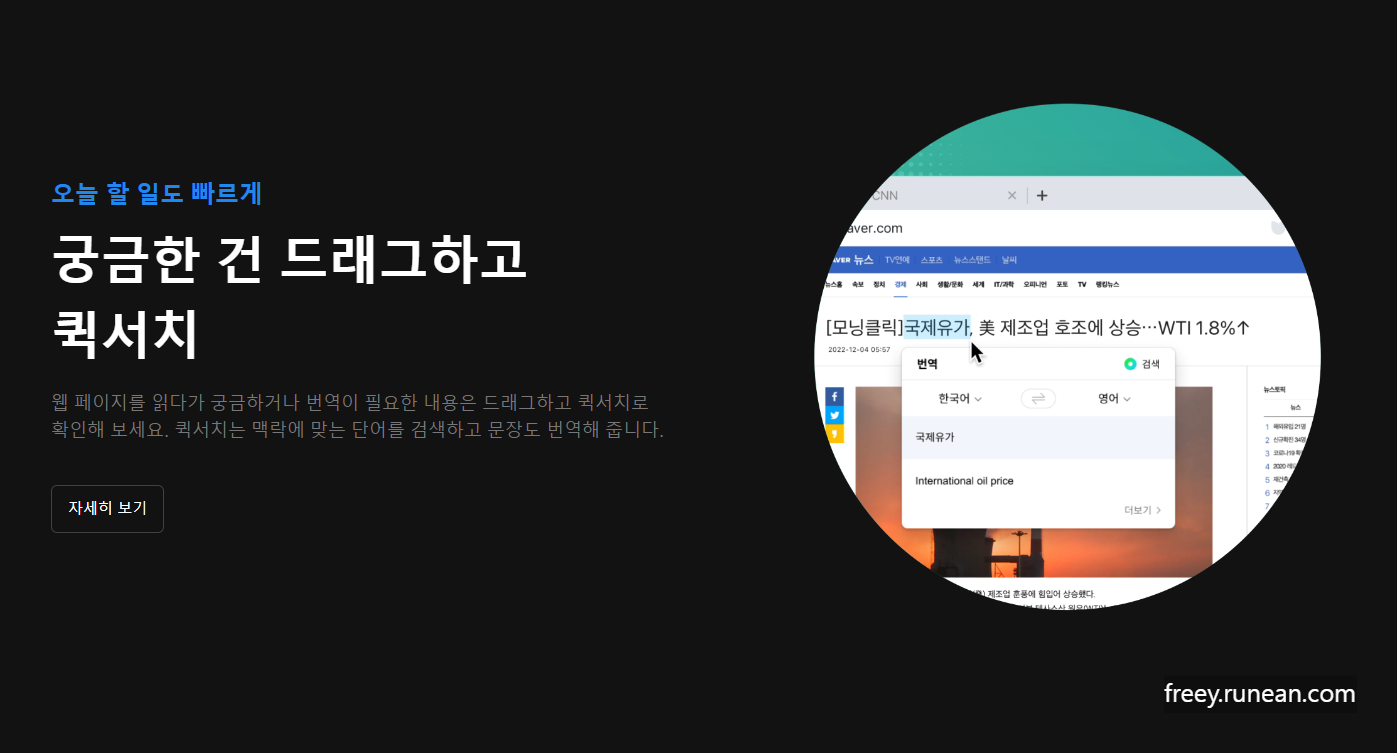 요즘 자주 해외 사이트를 방문하는 편인데, 언어의 장벽 때문에 정보 수집에 어려움을 겪곤 했습니다. 그런데 네이버 웨일의 '페이지 번역' 기능을 사용하니, 한 클릭으로 웹 페이지 전체를 한국어로 번역할 수 있었습니다. 이 기능 덕분에 더이상 언어 장벽에 부딪히지 않고 필요한 정보를 손쉽게 얻을 수 있게 되었습니다.