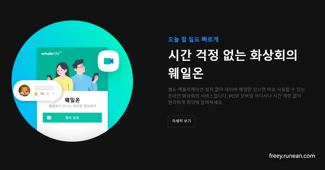 웨일 온은 화상 회의나 원격 교육을 위한 기능입니다. 사용자는 별도의 소프트웨어 설치 없이도 브라우저 내에서 바로 화상 회의를 진행할 수 있으며, 편리한 화면 공유 기능도 제공합니다.